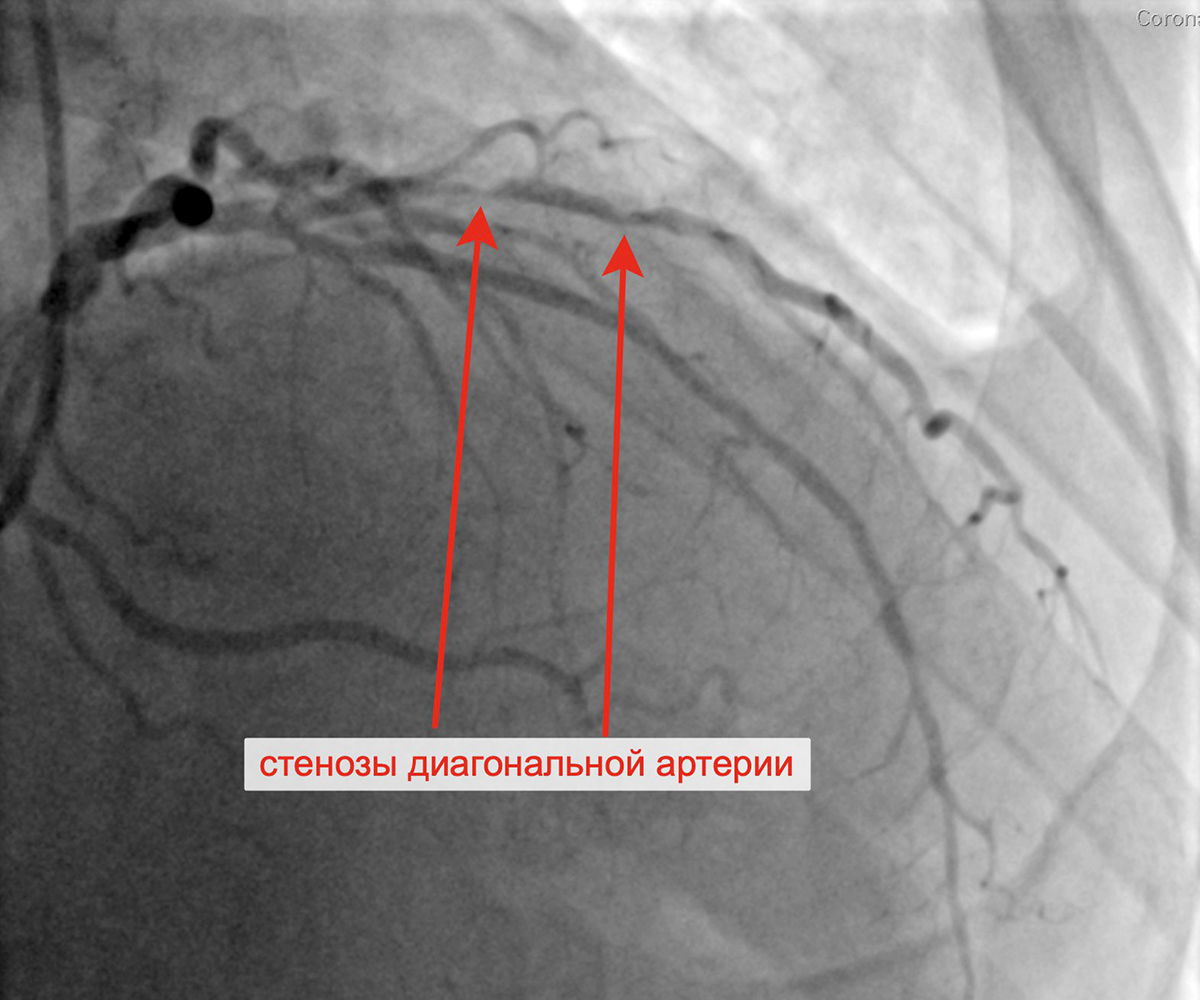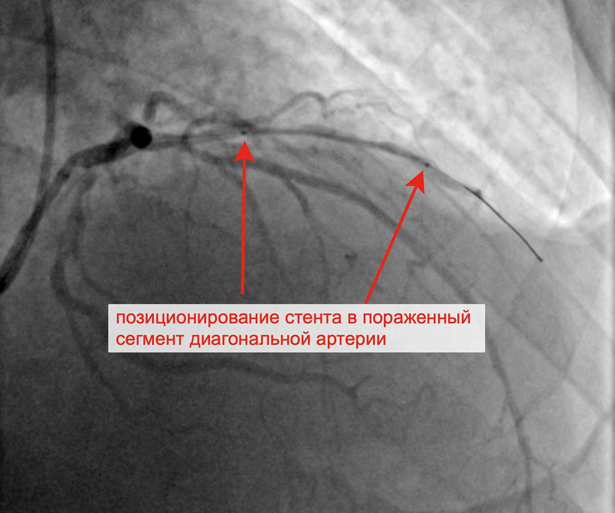 Стенозы диагональной артерии Выполнена баллонная ангиопластика ДА