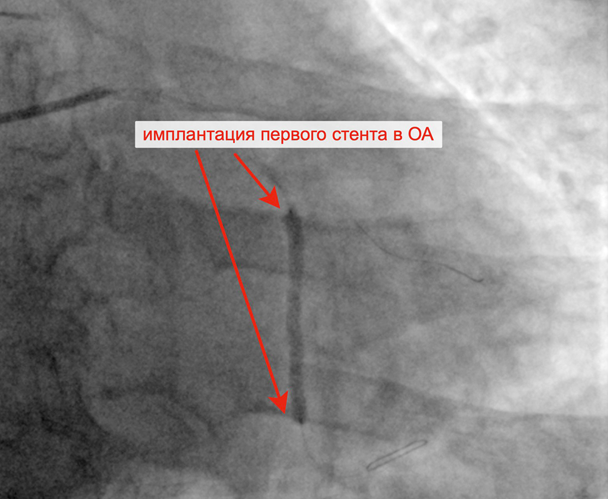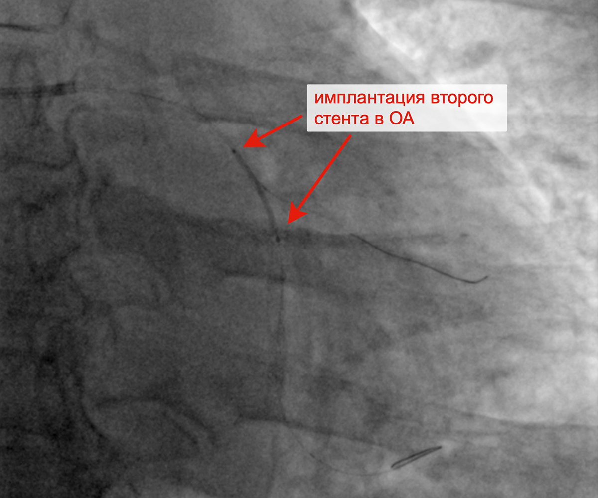 Имплантация первого стента в ОА Имплантация второго стента в ОА