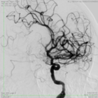 Пациентка 40 лет поступила в приемное отделение с признаками острого нарушения мозгового кровообращения. При осмотре лицо ассиметрично, речевому контакту практически недоступна, движения правой в правых конечностях отсутствуют. Выполнена КТ головного мозга, по результатам которой принято решение о переводе пациентки в отделение РХМДиЛ для выполнения ангиографии.