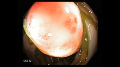 У пациента 69 лет с терминальной стадией хронической почечной недостаточности, анемией (Нb 78 г/л), находящегося на гемодиализе в отделении нефрологии, при колоноскопии выявлено большое подслизистое образование,исходящее из баугиниевой заслонки, размерами 7,0*3,0*2,5 см — предположительно липома. После комплексного обследования (МРТ брюшной полости, УЗИ, коагулограмма и др.) было решено удалить образование эндоскопически внутрипросветно. Но случай был неординарный: пациент получал гепарин с целью профилактики тромбообразования на диализе, поэтому с целью профилактики кровотечения в ходе операции и после нее была проведена подготовка по специально разработанной для таких пациентов методике. Операция выполнялась с учетом нарушенной трофики тканей, используя лигатурные петли Олимпус. Произведена апикальная резекция липомы по разработанной в ГНЦК им. А. Н. Рыжих методике — бескровно и без осложнений.