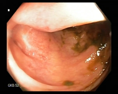После операции у пациента стала нормализоваться формула крови, и через 3 месяца при контрольной колоноскопии на месте липомы — линейный рубец; гемоглобин поднялся до 113 г/л, перестали мучить запоры.