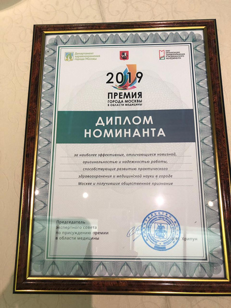 Сегодня, 25 апреля в Здании Правительства Москвы состоялся финал Премии города Москвы в области медицины – 2019