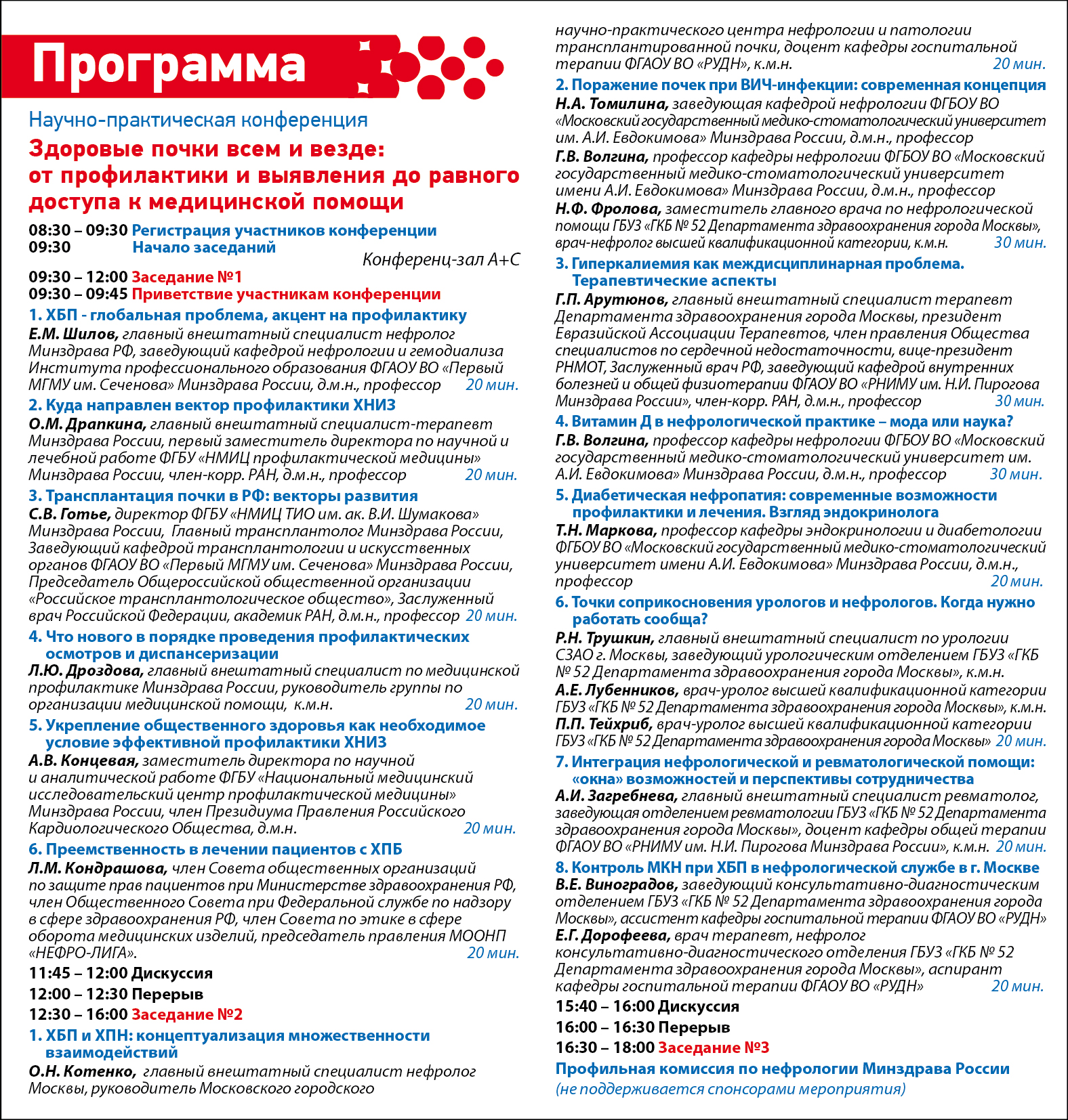 Программа конференции рассчитана на врачей, работающих в области практической медицин: нефрологов, урологов, терапевтов. Вход свободный, требуется онлайн-регистрация.