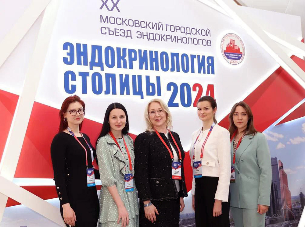 ХХ Московский городской съезд «Эндокринология столицы 2024» 29–31 марта 2024 г. — это 6 докладов заведующей отделением эндокринологии Марковой Т. Н. — о проблемах ранней диагностики сахарного диабета и преддиабета, о профилактике осложнений диабета, об опыте длительного применения инновационных сахароснижающих препаратов на базе отделения эндокринологии (агонистов рецепторов глюкагоноподобного пептида 1, комбинированных инсулинов нового поколения). В секции молодых специалистов «Шаг вперед: от обучения к практике» — доклад ординаторов Шкодкиной В. В.и Абдулхаликовой З. А.на тему «Сложности дифференциальной диагностики подострого тиреоидита и диффузно-токсического зоба».