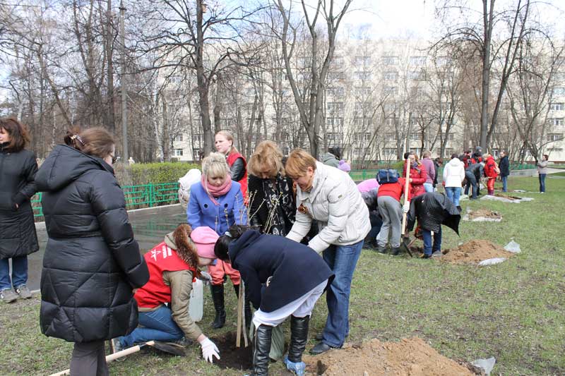 25 апреля на территории больницы прошел второй этап весеннего субботника, в ходе которого были посажены именные сорта сирени в честь полководцев и военачальников Великой Отечественной войны, именами которых названы улицы нашего района. Уникальные сорта специально выведены московскими селекционерами и подарены нашему округу к 70-летию Победы. Акция «Сирень Победы на улицах полководцев Победы» проводится уже не первый год при участии детской общественной организации «Цветочная дружина» и при поддержке муниципалитета и управы района Щукино.