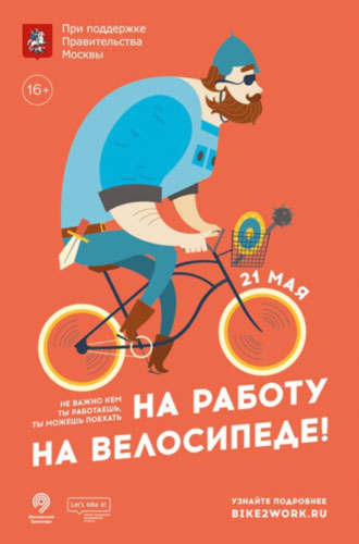 Департамент транспорта и развития дорожно-транспортной инфраструктуры города Москвы организует акцию «На работу на велосипеде», которая пройдёт 21 мая 2015 года. Организаторами мероприятия также выступает проект по развитию велодвижения в России «Let’s bike it!»
