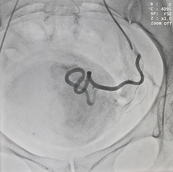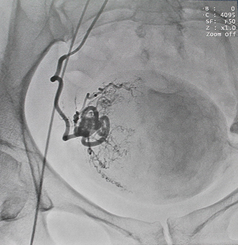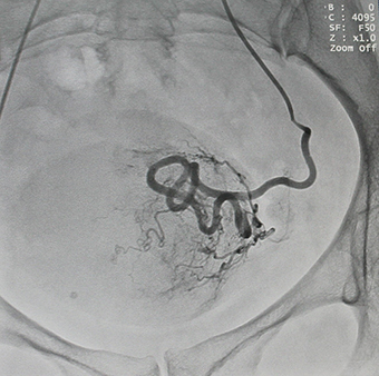 Пациентка 45 лет поступила в отделение гинекологии с жалобами на боли внизу живота, периодические обильные и длительные кровотечения. При обследовании у нее были выявлены множественные миоматозные узлы субсерозной локализации. Такая локализация и доброкачественный характер образований позволяет применить для лечения малоинвазивный и щадящий метод лечения - эндоваскулярную эмболизацию маточных артерий. До эпохи активного развития эндоваскулярных технологий эта патология лечилась исключительно с помощью хирургических методов и часто требовала полного удаления матки.