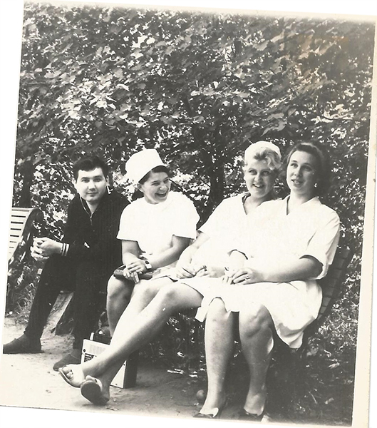 «Пациенты с заболеваниями почек были самые разные, некоторые лежали часто, болели долго и тяжело. Но многих удавалось вылечить. На фото я с таким пациентом, мы ему хорошо помогли. Даже от военкомата лежали у нас ребята. Самое сложное, помню, было разбудить эту молодежь. Делаешь, бывало, пробу Зимницкого. Поднимаешь пациента с кровати – стоит. Только вышла из палаты, возвращаешься – он уже снова спит. А ночью гуляли — не угомонишь, и карты отбирали, и магнитофоны изымали, только чтобы они успокоились» — смеется Марина Ивановна.