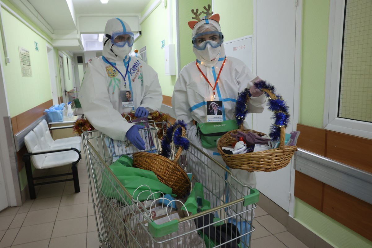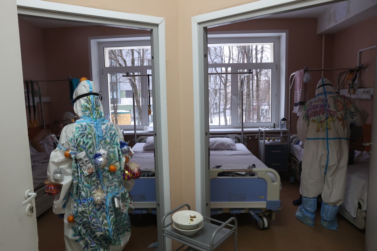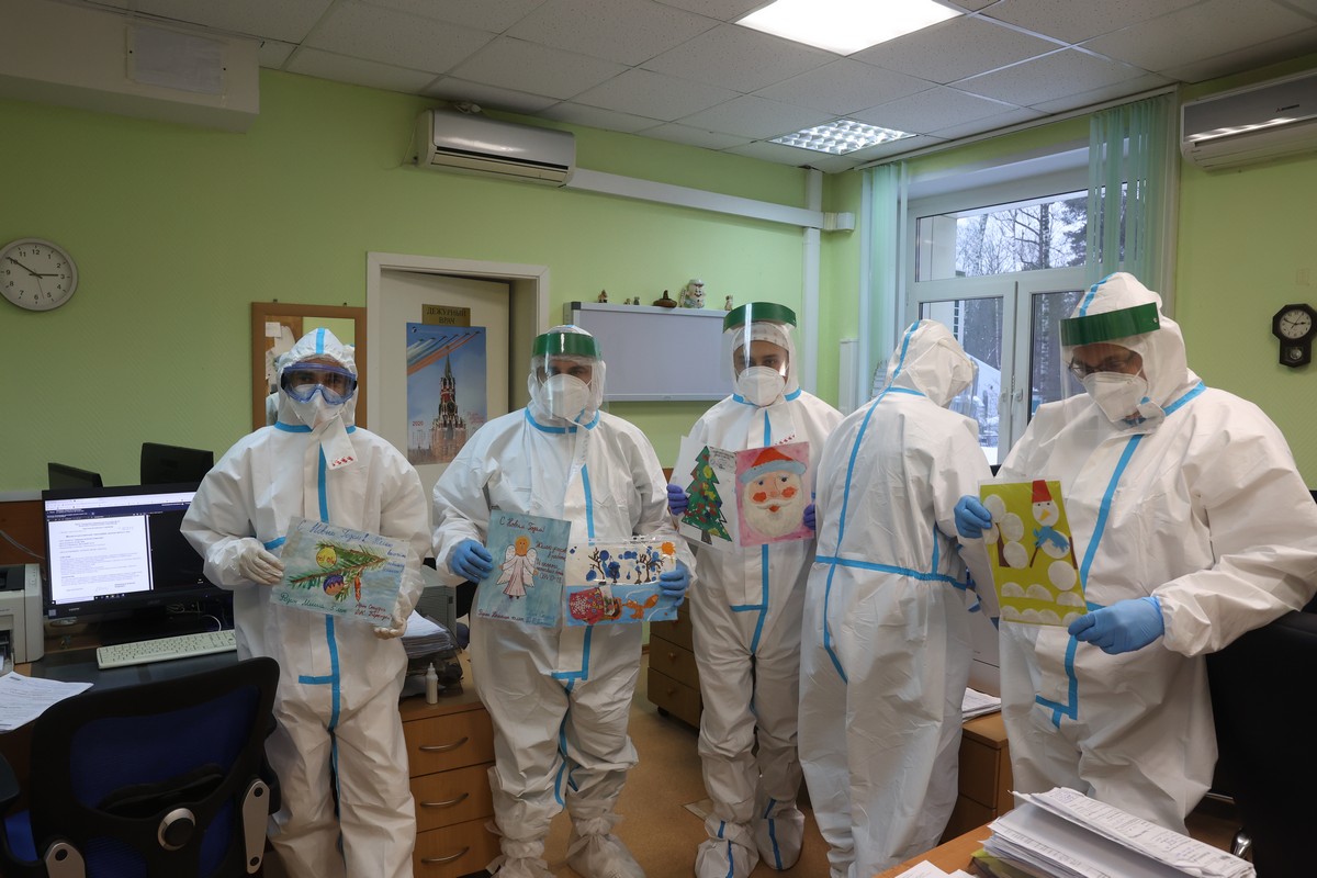 Режим для пациентов во время пандемии строже, например, в коридоры выходить можно только по необходимости. Да и в обычное время тяжелым больным не до праздника. Кто-то, если это не мешает соседям, тихонько смотрит телевизор, общается с родственниками. Врачи поздравляют пациентов на вечернем обходе, сестры нарядили для них настоящую живую елку. Поздравлять тех, кто встретит Новый год в больнице, приходили волонтеры – с подарками и рисунками, которые приготовили для них дети. «Праздник есть праздник, хорошее настроение помогает нам работать, а пациентам выздоравливать. Поздравишь всех кого увидишь, и тебя поздравят, и на душе тепло», - рассказывает санитарка Лилиана Миронова.
