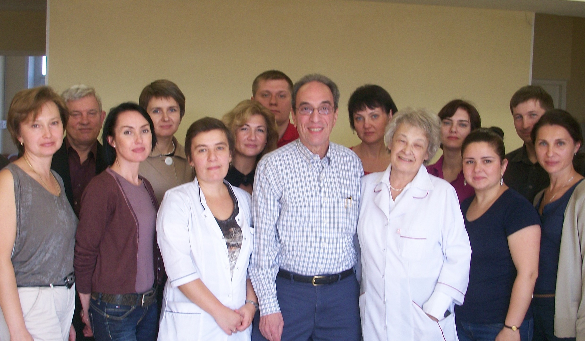 Архивное фото: Артур Коэн, доктор медицины, профессор патологоанатомии клиники Cedars-Sinai (Лос-Анджелес, США), Н.А. Томилина, Е.С. Столяревич и участники мастер-класса по почечной патологии
